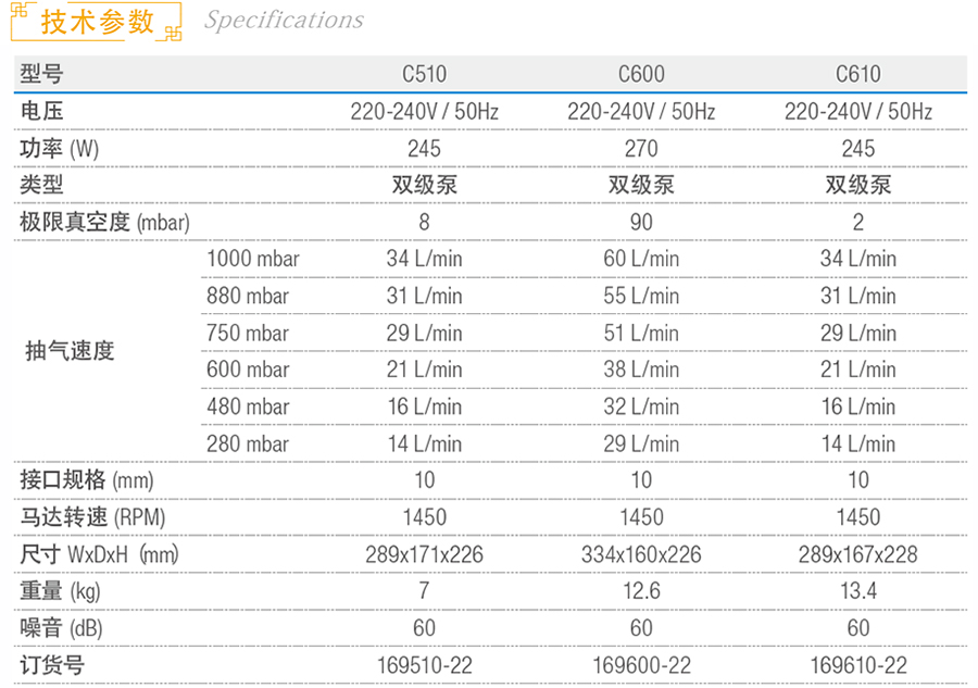 商品名称:德国Wiggens 防腐蚀隔膜真空泵 C510