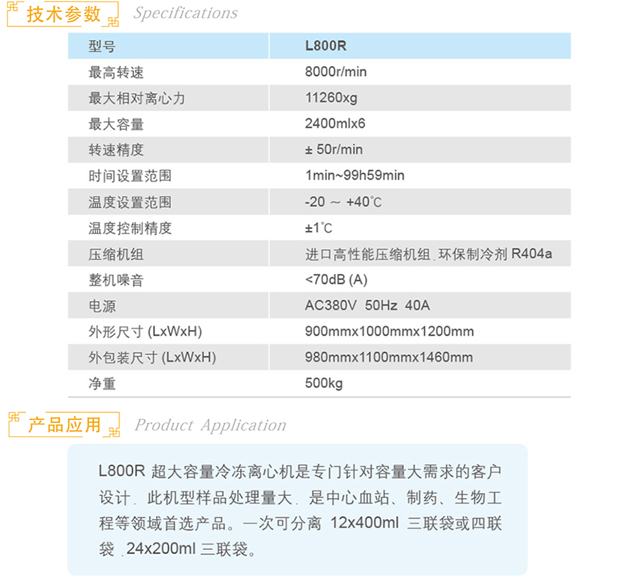 商品名称:上海卢湘仪 超大容量冷冻离心机 L800R