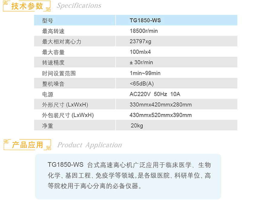 商品名称:上海卢湘仪 台式高速离心机 TG1850-WS