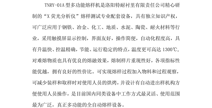商品名称:洛阳特耐衬里 x荧光光谱分析专用全自动熔样机 TNRY-01A