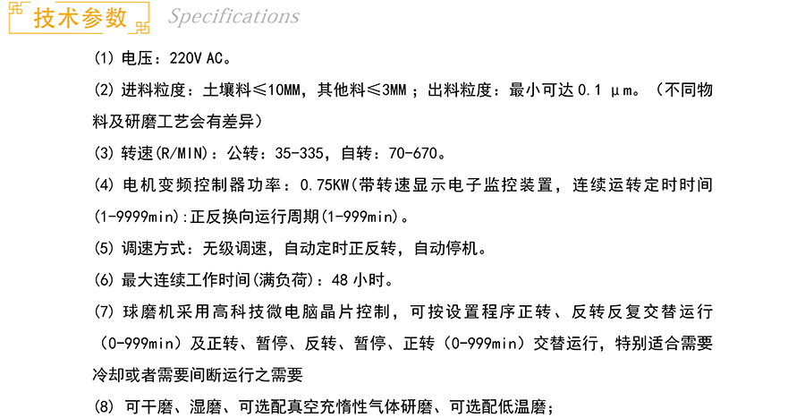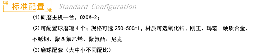 (2)可配置球磨罐4个;规格可选250-500ml,材质可选氧化锆、刚玉、玛瑙、硬质合金、不锈钢、聚四氟乙烯、聚氨酯、尼龙