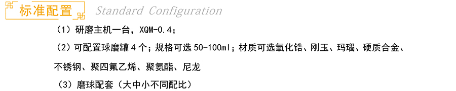 (2)可配置球磨罐4个;规格可选50-100ml;材质可选氧化锆、刚玉、玛瑙、硬质合金、不锈钢、聚四氟乙烯、聚氨酯、尼龙