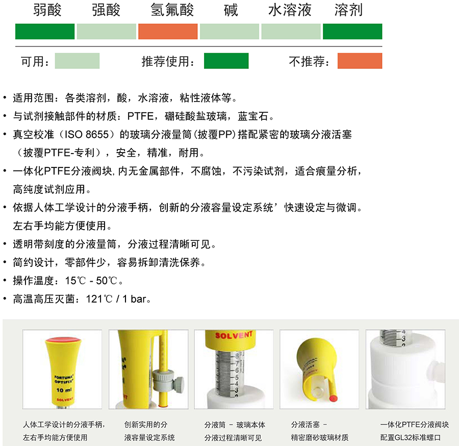 德国 FORTUNA 5号 瓶口分液器 OPTIFIX SOLVENT 溶剂专用型 容量10-50ml