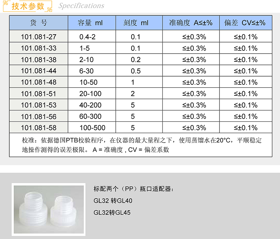 商品毛重:0.00k 商品产地:德国 商品型号:容量10-50ml