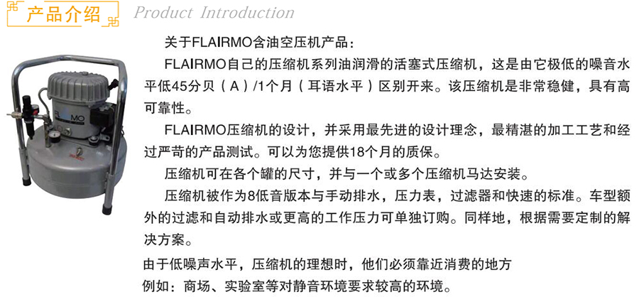 商品名称:安泰瑞科 实验室及医疗用压缩机 FLAIRMO 含油空压机 S33.15 商品编号:10005574 上架时间:2017/10/13 0:00:00