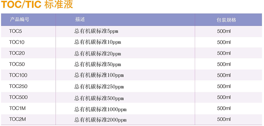 总有机碳标准250ppm