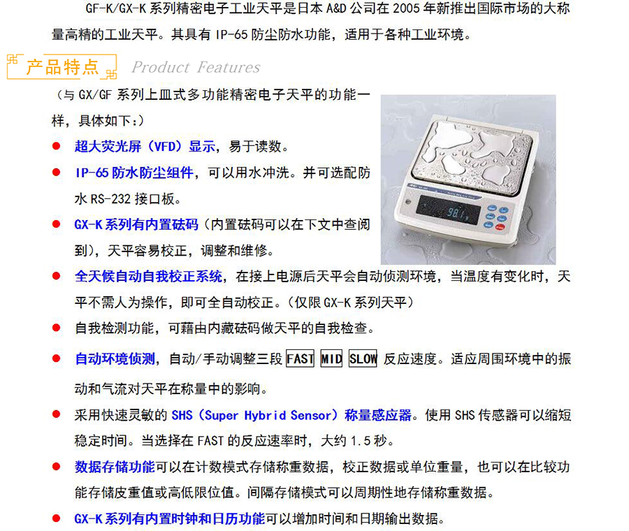 商品名称:A&D GF-K系列精密电子工业天平 外校 GF-12K 12kg/0.1g