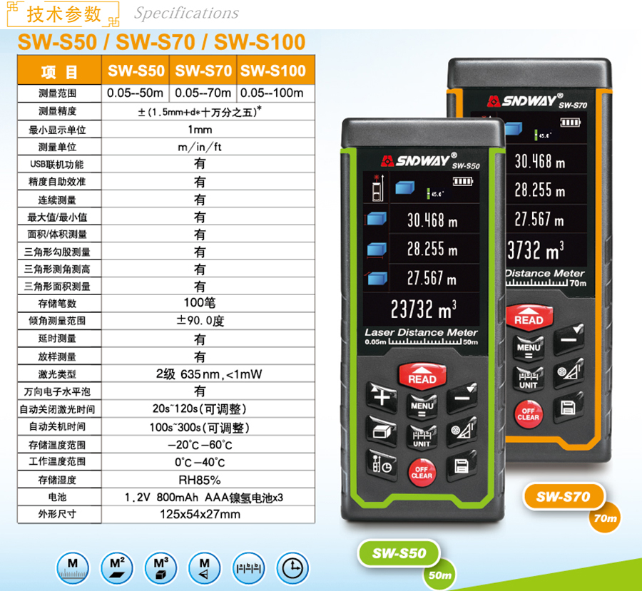 商品名称:深达威 彩屏充电测距仪 SW-S100