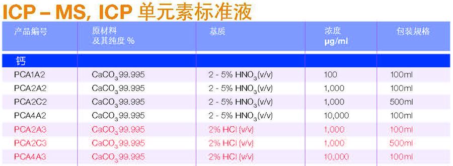 商品名称:爱尔兰Reagecon ICP-MS/ICP校准标准液 钙 商品编号:30000623 上架时间:2016/7/8 0:00:00