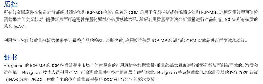 爱尔兰Reagecon ICP-MS/ICP校准标准液 铜