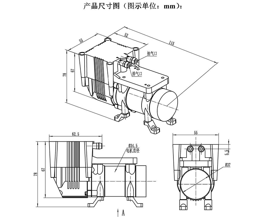 商品名称:成都气海机电 FXA402.5 特种微型高低温气泵 抽气-打气两用泵
