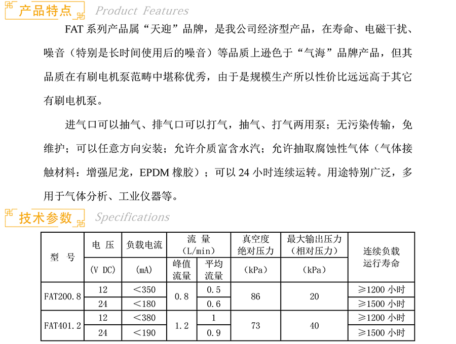 商品名称:成都气海机电 FAT200.8 微型抽打气泵