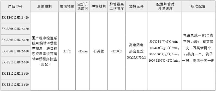 气路总成一套(含真空压力表),石英管一支,石英堵两个,石英舟一个,钩子一把、高温手套一副
