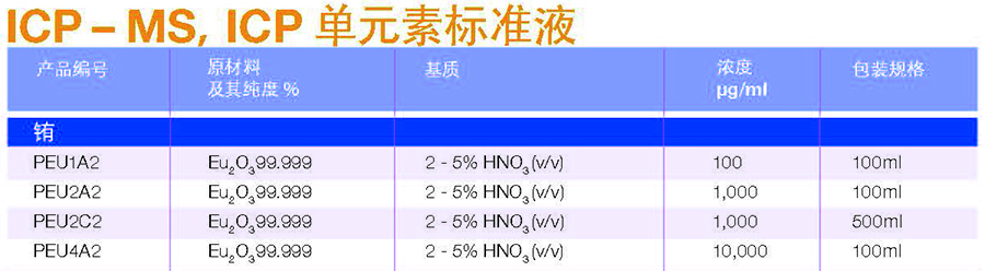 商品名称:爱尔兰Reagecon ICP-MS/ICP校准标准液 铕 商品编号:30000665 上架时间:2016/7/8 0:00:00