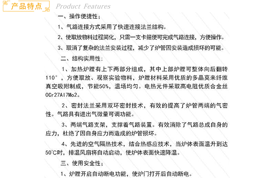 气路总成一套(含真空压力表),石英管一支,石英堵两个,石英舟一个,钩子一把、高温手套一副