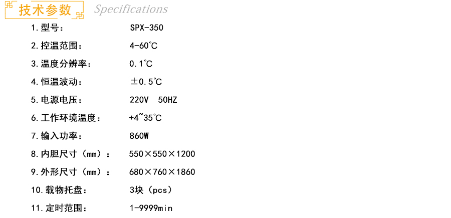 商品名称:中仪国科 生化培养箱 SPX-350 微电脑控制(带定时)