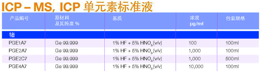 商品名称:爱尔兰Reagecon ICP-MS/ICP校准标准液 锗 商品编号:30000674 上架时间:2016/7/8 0:00:00