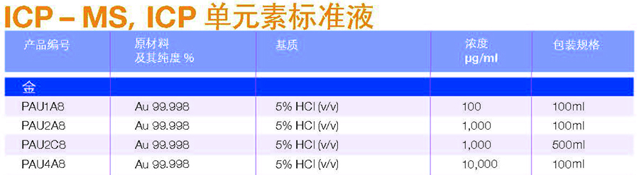 商品名称:爱尔兰Reagecon ICP-MS/ICP校准标准液 金 商品编号:30000681 上架时间:2016/7/8 0:00:00