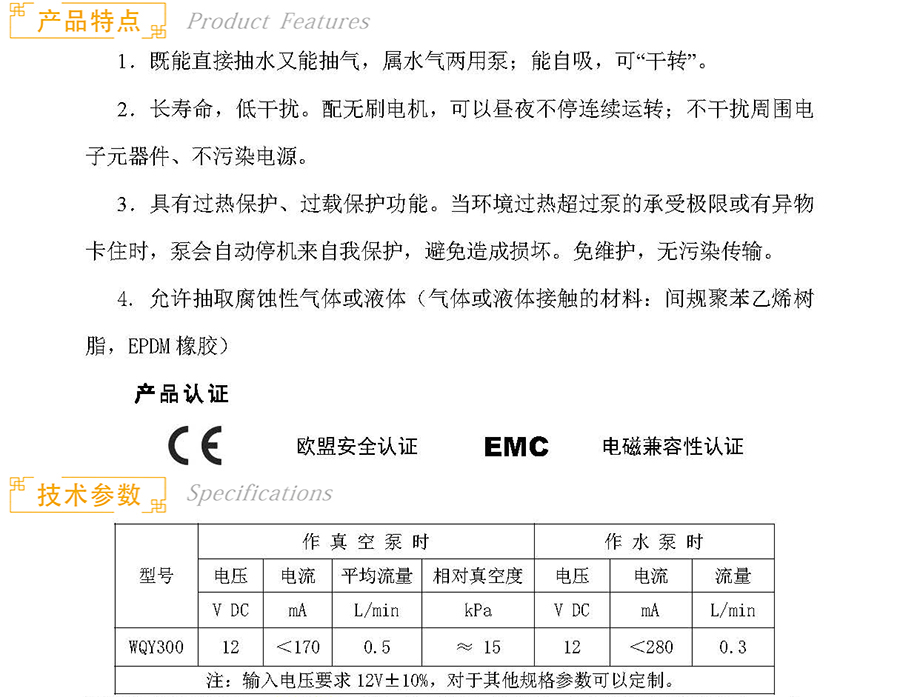 商品名称:成都气海机电 WQY300 微型真空水泵
