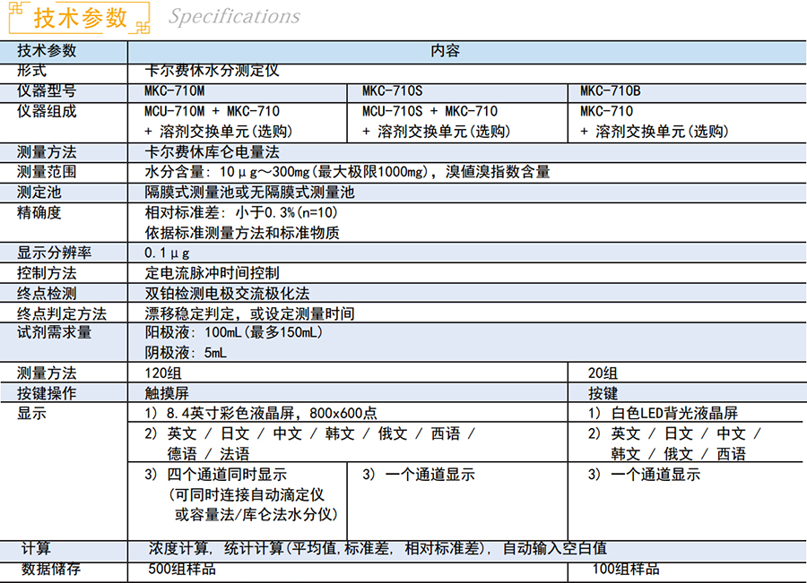 商品名称:日本京都电子 卡氏水分测定仪 库伦电量方式 MKC-710S豪华型