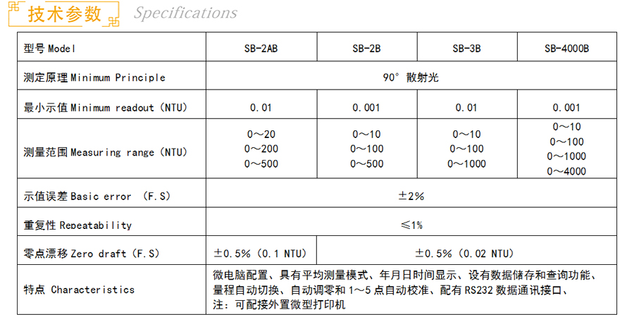 商品名称:上海三本 SB-2B 便携式浊度计(仪) 商品编号:10006941 上架时间:2017/12/7 0:00:00