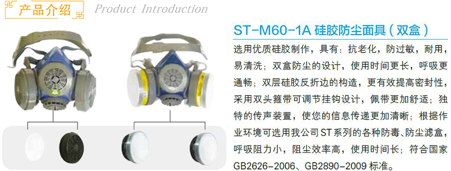 商品名称:北京海孚 ST-M60-1A 硅胶防尘面具 ( 双盒 )