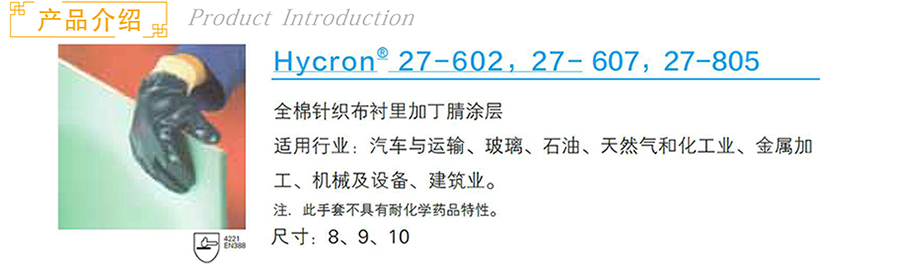 商品名称:北京海孚 Hycron® 27-602,27- 607,27-805 涂层手套