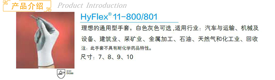 商品名称:北京海孚 HyFlex® 11-800、801 通用型手套