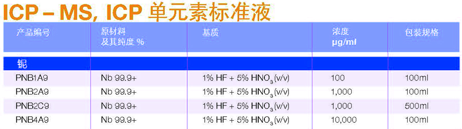商品名称:爱尔兰Reagecon ICP-MS/ICP校准标准液 铌 商品编号:30000751 上架时间:2016/7/8 0:00:00