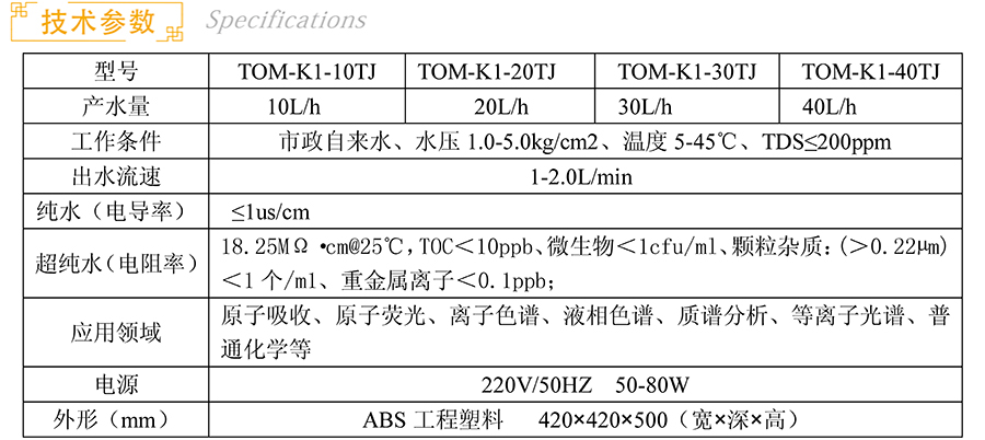 美国TOMOS TOM-K1-T系列超纯水机 基础型 TOM-K1-30TJ