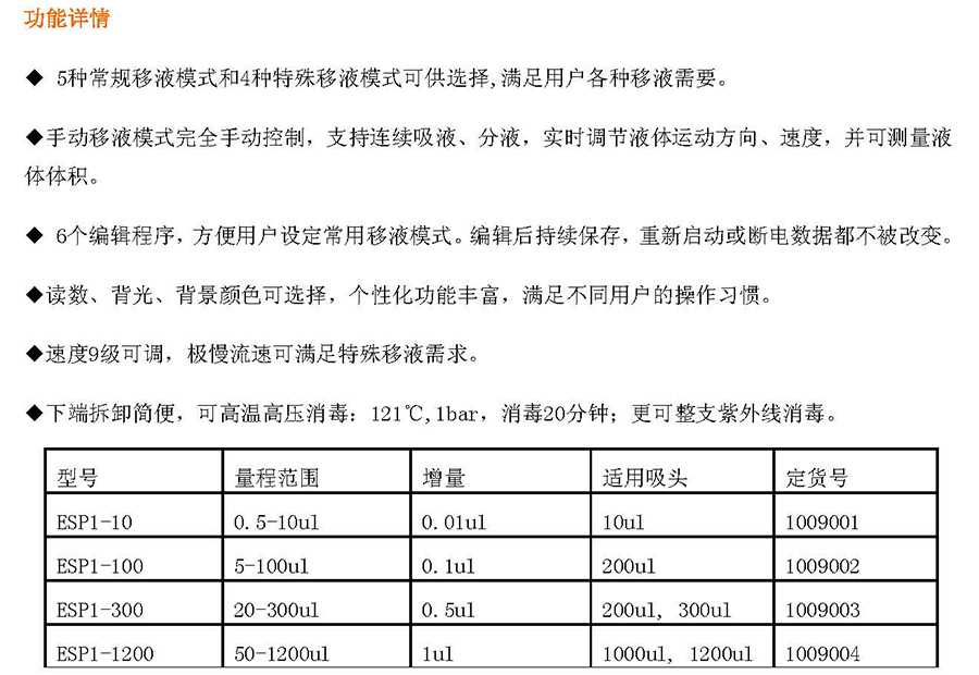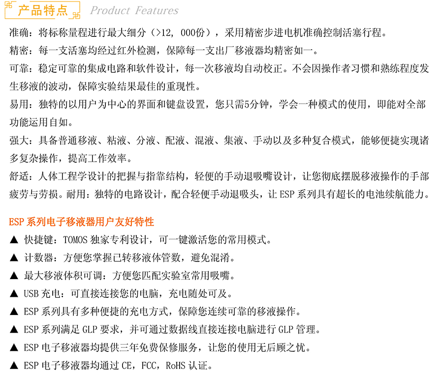 商品名称:美国TOMOS ESP系列 ESP8-100 电动移液器