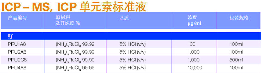 商品名称:爱尔兰Reagecon ICP-MS/ICP校准标准液 钌 商品编号:30000792 上架时间:2016/7/8 0:00:00