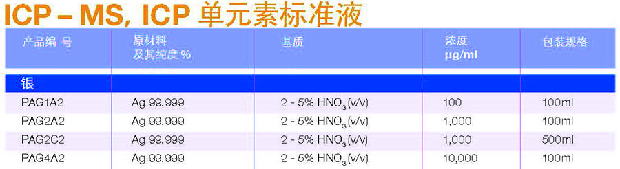 商品名称:爱尔兰Reagecon ICP-MS/ICP校准标准液 银 商品编号:30000815 上架时间:2016/7/8 0:00:00