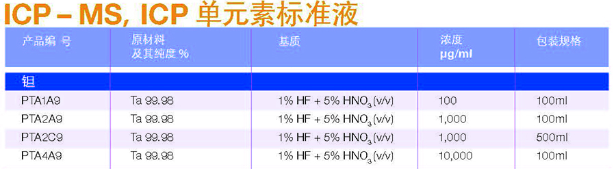 商品名称:爱尔兰Reagecon ICP-MS/ICP校准标准液 钽 商品编号:30000835 上架时间:2016/7/8 0:00:00