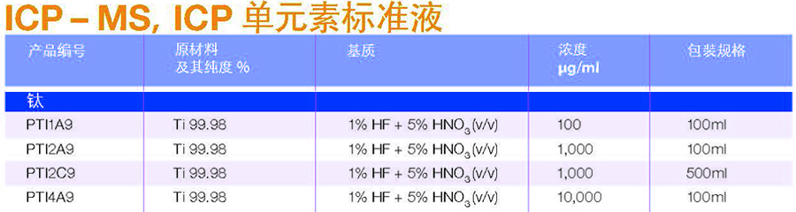 商品名称:爱尔兰Reagecon ICP-MS/ICP校准标准液 钛 商品编号:30000868 上架时间:2016/7/8 0:00:00