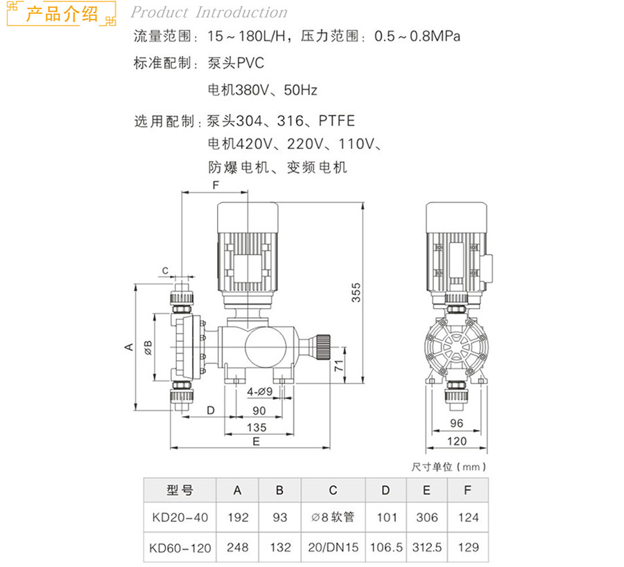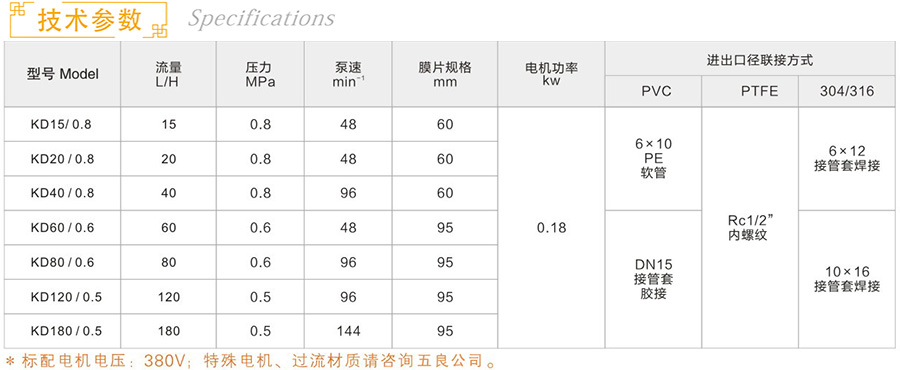 标准配置:泵头PVC、电机380V 50Hz