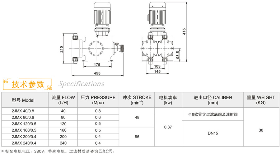 商品名称:上海五良 2JMX隔膜系列计量泵 2JMX 120/0.5