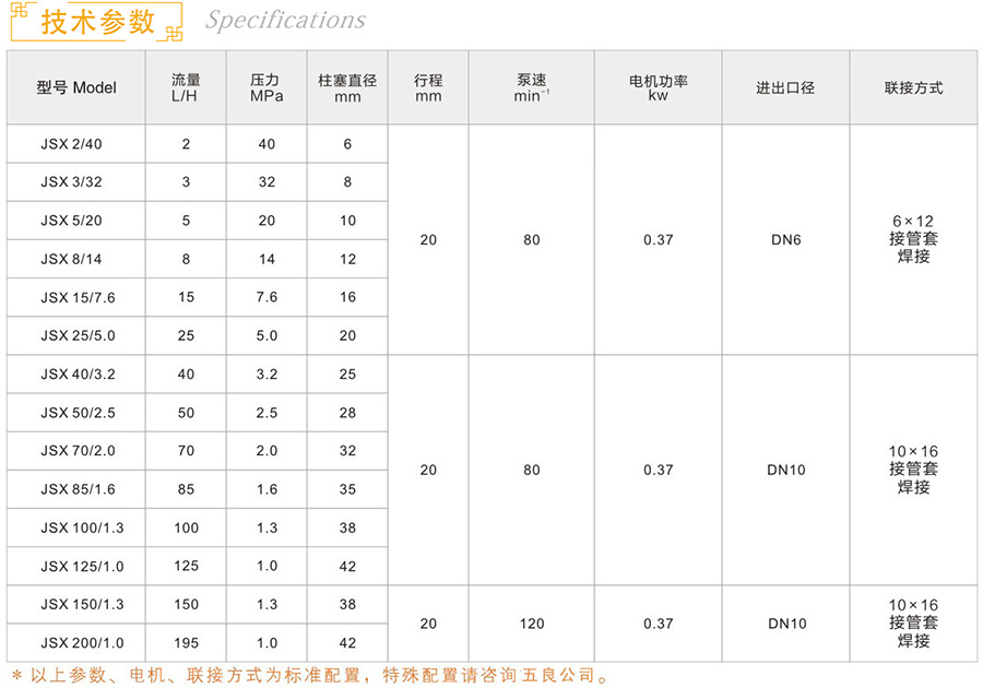 上海五良 JSX柱塞式计量泵 JSX 100/1.3