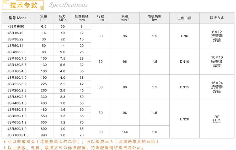上海五良 JSR柱塞式计量泵 JSR 330/2.3