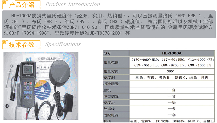 商品名称:上海中研 HL-1000A 里氏硬度计 商品编号:10008345 上架时间:2018/3/1 0:00:00