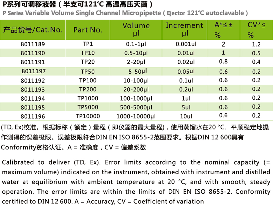 商品名称:宁波拓普森 P系列可调移液器(半支可121℃高温高压灭菌) TP200