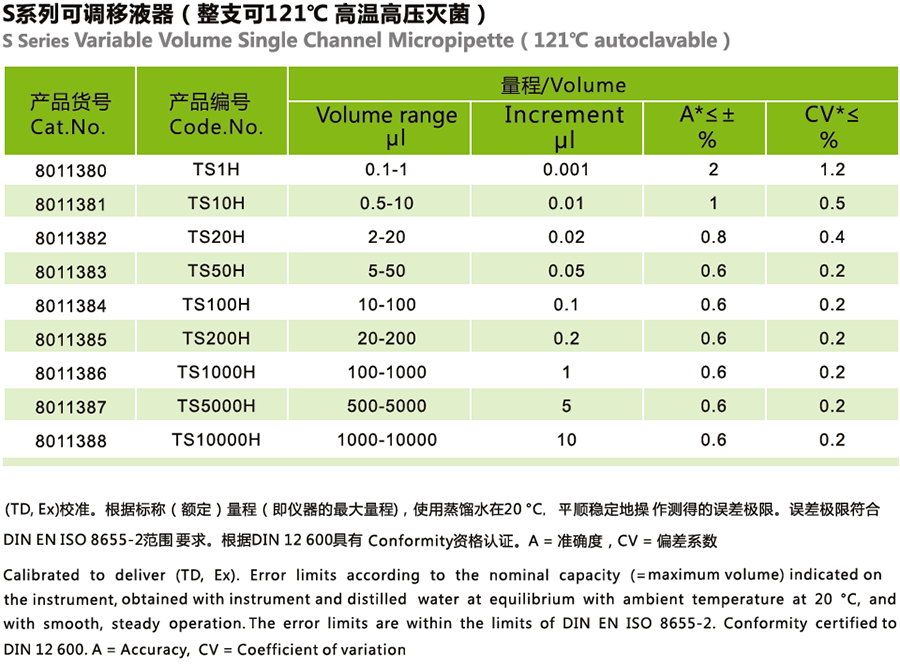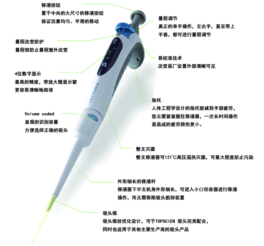商品名称:宁波拓普森 S系列可调移液器(整支可121℃高温高压灭菌) TS10000H