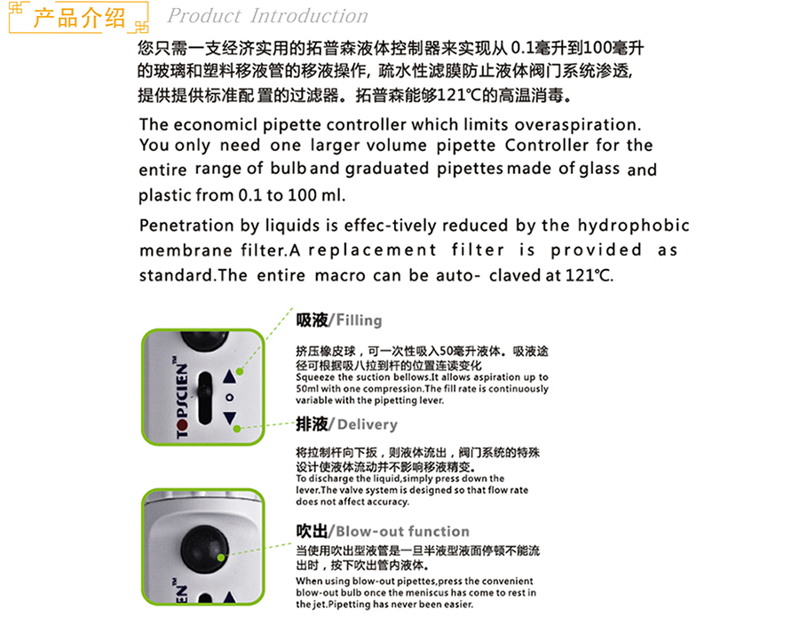 商品名称:宁波拓普森 手动大容量移液控制器 TL01C