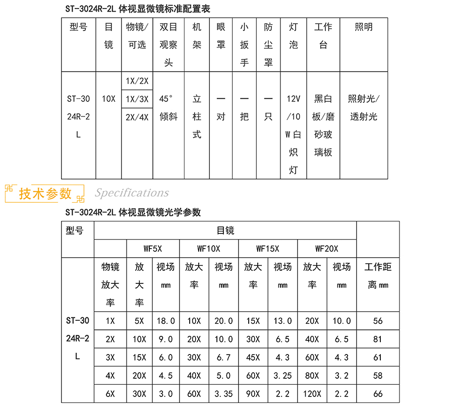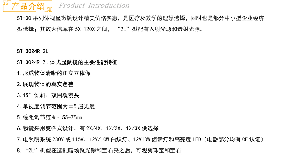 商品名称:余姚大工仪器 ST-30系列体视显微镜 ST-3024R-2L