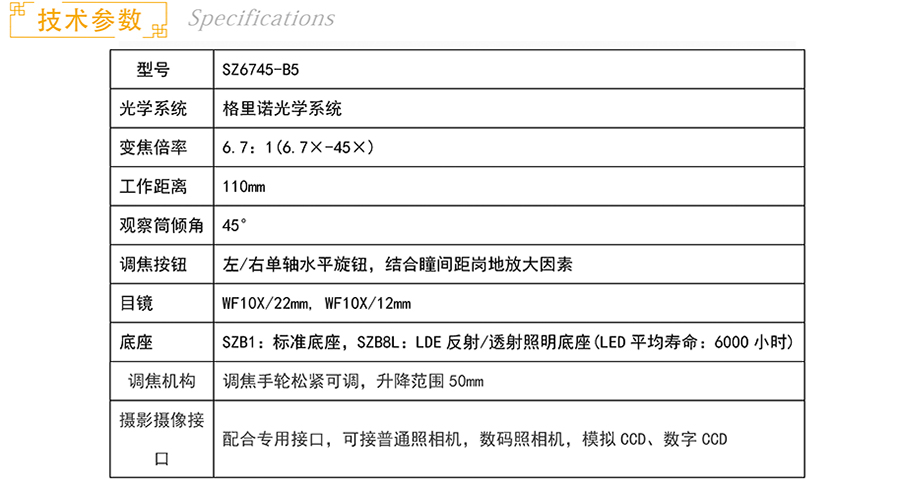 商品名称:余姚大工仪器 SZ系列连续变倍体视显微镜 SZ6745-B6
