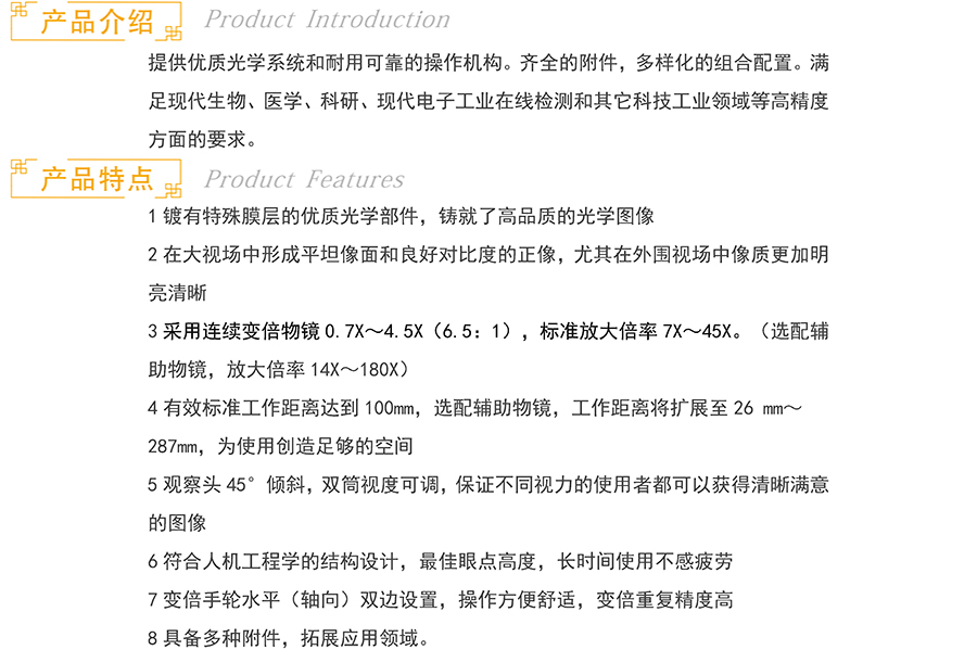 采用连续变倍物镜0.7X~4.5X(6.5:1)