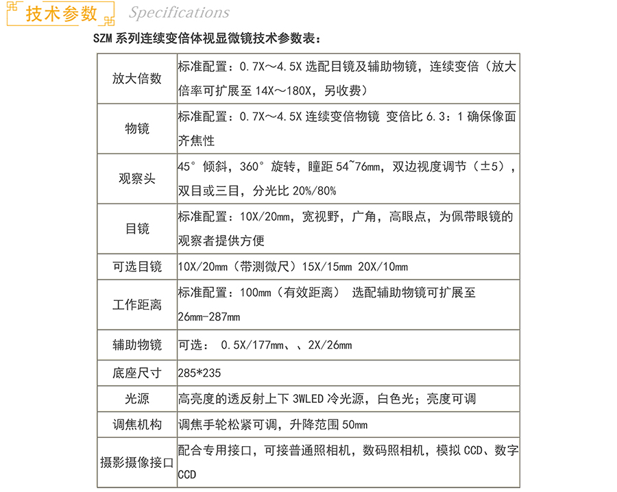 商品名称:余姚大工仪器 SZM系列连续变倍体视显微镜 SZM45-J4L