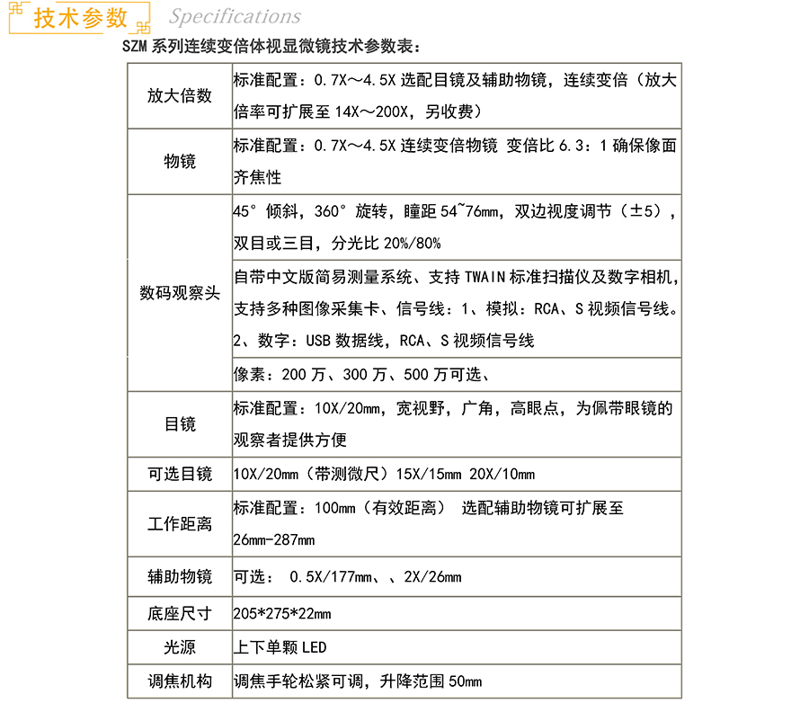 商品名称:余姚大工仪器 SZM系列连续变倍体视显微镜 SZM45-B9L