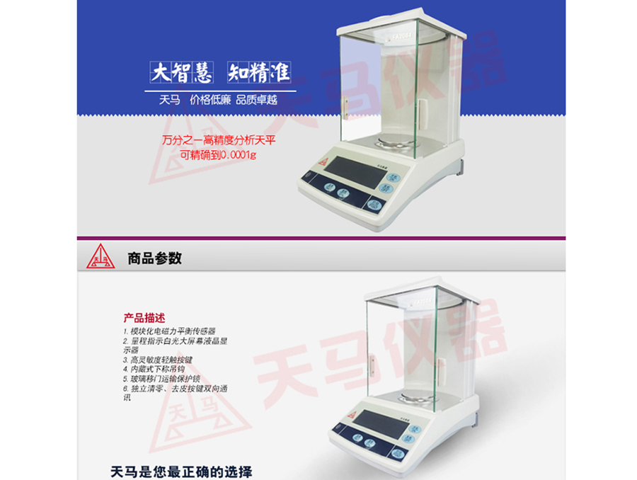 商品名称:天津天马 精密电子天平 万分之一 FA3104 310g/0.1mg