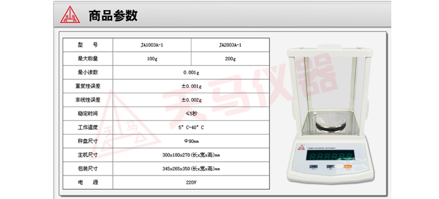 商品名称:天津天马 精密电子天平 千分之一 JA2003A 200g/1mg